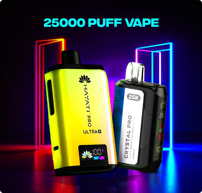 When it comes to finding the best 25000-puff disposable e-cigarette that lasts and performs at its peak, it’s all about the balance. The Crystal Pro Boost Plus is a standout. Dual mesh coils ensure smooth, consistent flavour every time. The adjustable airflow lets you tailor the draw to your liking (MTL or DTL), whether you want it tighter or airier. It’s a small device with big results. The Hayati Pro Ultra Plus brings rich, smooth flavour that sticks with you. With its rechargeable battery, you never need to throw it away when it runs low - just plug it in and keep going. Moreover, it comes with replacement pods that make it legal after the single-use vape ban. Few vape bars give you room to fine-tune, but the Crystal Prime Aura Bar Twist lets you adjust the airflow resistance for a more personalised vape, making it perfect for those who like a little more control.