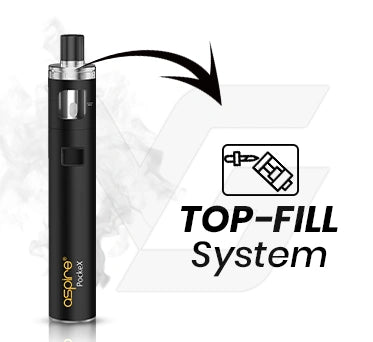 Refilling the Aspire PockeX AIO is made easy with its top-fill system. Simply unscrew the top of the tank to access the filling port. Be sure to fill up to the max line to avoid leakage and to keep your coil well-saturated for optimal performance.