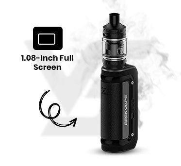 The Geekvape M100 mini features a clear 1.08-inch full screen with a new user interface. For example, it provides all the essential vaping information, including battery life, wattage, and coil resistance, in an easy-to-read (from the naked eye) format.