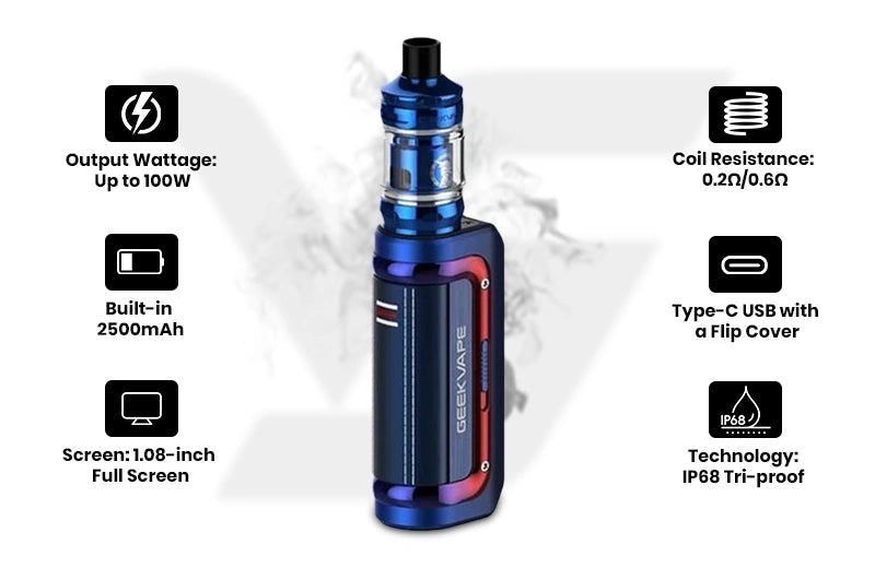 The Geekvape M100 Aegis Mini is built to endure water, dust and shock with a new-generation IP68 tri-proof rating. Enjoy peace of mind and long-term reliability knowing your vape device can withstand harsh environments and accidental drops.