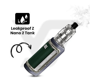 The kit includes the upgraded Z Nano 2 Tank, which is designed with a leakproof top-to-bottom airflow system. This directs air down to the coil, providing a smooth draw and preventing liquid from leaking out, while enhancing flavour and vapour production.