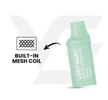 The Lost Mary BM600 prefilled pods - 2pk contain a built-in mesh coil that heats the e-liquid evenly across the wick. Mesh coils are also known for better heat distribution compared to standard wire coils. They offer consistent vapour from start to finish and reduce the chance of dry hits.