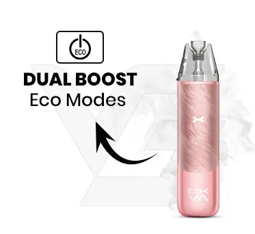 - Use the dedicated mode switch on the side of the device to select either Boost Mode (for intense flavour) or Eco Mode (for extended battery and pod life)