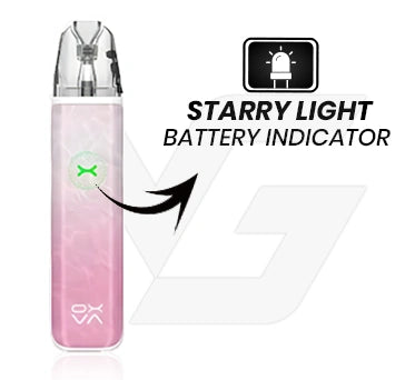 The Oxva Xlim Go 2 vape kit features a tri-colour LED light system with a stary glow and subtle hidden design for device's battery status indication. The light turns green on high blue on medium and red on low battery percentage, so you charge on time and escape the mid way dead vape.