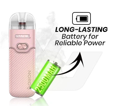 The Nord GT Vape Kit houses a 2500mAh battery, offering enough energy to keep the device active through extended sessions. It removes concerns about running out of power during the day, as it lets the device perform steadily, and the vaper focuses on the draw only.