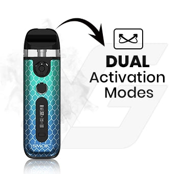 The Smok Novo 5 Pod Vape Kit is a highly versatile device with two activation modes, i.e., “auto” and “button”. The auto-inhale activation provides a natural experience where you inhale to produce vapour, perfect for new vapers making the switch. Whereas the manual fire button offers instant power and a slightly thicker cloud for a traditional vaping experience, or controlled vapour production.