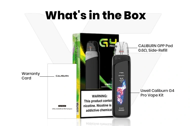 - 1 x Uwell Caliburn G4 Pro Vape Kit