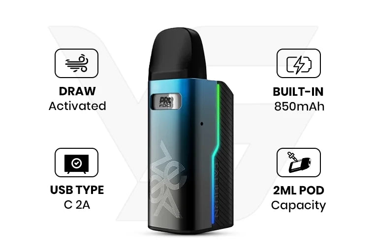 The GZ2 features a sleek, animated RGB LED strip on its side, which is a true breaker from traditional indicators. This stylish light not only indicates battery life and charging status with distinct colours but also displays a futuristic light show with every inhale.