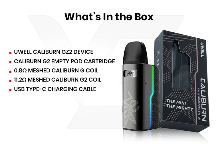 - 1 x 0.8Ω Meshed Caliburn G Coil (pre-installed)
