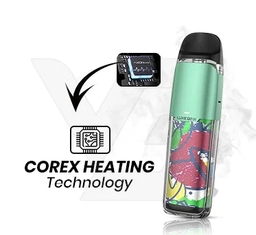 The integrated coils within pods in Vaperosso Luxe Q Vape Kit utilise COREX heating technology that is known for exceptional flavour delivery. Further, this innovative system features a unique morph-mesh structure that has fluffier cotton wick for efficient e-liquid absorption and ensures even heating. This eliminates the risk of coil burnouts and extends coil life up to 50%.