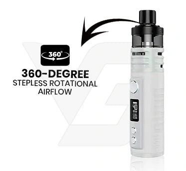 A 360-degree stepless rotation system controls the Drag H40's airflow. Twisting the entire pod within the device, you can easily set the airflow from a wide open draw for DTL vaping to a restricted inhale for MTL. This mechanism offers a high degree of customisation for the user's preferred draw resistance.