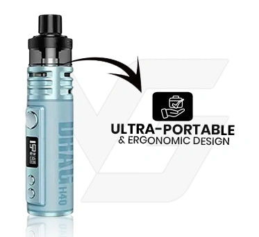 The Voopoo Drag H40 pod mod is highly portable with a compact size and lightweight zinc alloy manufacturing. The signature leather grip provides a comfortable and secure hold, while the zinc alloy frame ensures durability, making it ideal for everyday use on the go.