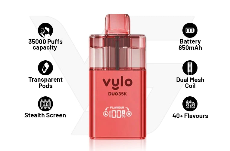 The Duo 35k by Vylo is more than just a pod. Many vapers love it as it comes with innovative dual flavour options. This vape features a stealth screen that becomes visible when activated. The transparent pods can help you track the flavour level while vaping. Additionally, a flavour switch from right to left is used for a 2-in-1 flavour system.